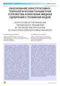 Обоснована необходимость внесения удобрений с поливной водой, описано техническое средство для внесения удобрений с поливной водой. Выявлено, что при использовании технологии внесения жидких удобрений с поливной водой появляется возможность полной автоматизации процесса обеспечения растений элементами питания при дождевании различными типами дождевальной техники. Рассмотрено устройство для внесения удобрений в закрытую оросительную сеть. Приведена схема и результаты модельных исследований макетного образца, а также показаны его преимущества на мелиоративных системах. На основании проведенных исследований сделано заключение о требованиях к устройству и подготовке его к разработке рабочих чертежей на стадии проектирования. Использование данного устройства позволяетповысить эффективность смешивания жидких удобрений, повысить надежность работы, а также регулировать расход удобрений. Проведены экспериментальные исследования по определению влияния напора в трубопроводе и расположения ниже емкости с удобрениями. Создание вакуума во всасывающем трубопроводе и энергии всасывания во всасывающем трубопроводе смесителя соответствует значениям применяемого узла и производительности установки подачи воды в силовые цилиндры, что связано с установкой узла эжектора на магистральном трубопроводе чистой воды. Полученные значения определяют возможность проводить расчеты гидравлических параметров узла эжектора на магистральном трубопроводе и системы подачи удобрений независимо от характеристики гидромеханического оборудования после смешения удобрений с поливной водой и подачи смеси в поливные трубопроводы на орошаемый участок, засеянный в основном многолетними травами или другими культурами в соответствии с технологией их выращивания.