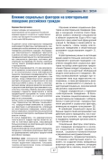 В данной статье электоральное поведение анализируются факторы и детерминанты, оказывающие особое влияния на электоральное поведение российских граждан. Исследование электорального поведения трактуется в рамках системы социальной детерминации гражданской деятельности и воспринимается как совокупность факторов, постоянно дей‑ ствующих на индивида или группу, имеющих логику своего развертывания во времени и пространстве. В статье подчеркивается, что ход экономического развития, в конечном итоге, воздействует на окончательные итоги электорального процесса. Население солидаризируется с правящими государственными органами в том случае, когда избиратели могут уверенно смотреть в будущее и не беспокоится за свое благосостояние в семье. В связи с этим кор‑ реляция между уровнем развития экономики и результатами выборов прослеживается до‑ статочно отчетливо. Именно поэтому каждый кандидат стремится представлять в своей предвыборной программе не только анализ текущего положения, но и целый комплекс мер по его улучшению. Автор статьи на примере работы в последние годы Правительства Москвы показывает, что, сосредотачивая внимание на социальных факторах и детерминантах, влияющих на электоральное поведение, можно добиваться серьезных положительных результатов в отношении электората к выборным органам власти столицы. В статье определено, что харизматичность политического лидера партии является од‑ ним из ключевых факторов, оказывающее большое влияние на электоральную культуру российского избирателя. В заключении автор статьи делает обобщение, связанное с влиянием социальных факторов на формирование выборных предпочтений российских граждан