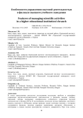 Особенности управления научной деятельностью в филиале высшего учебного заведения (2026)