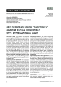 ВВЕДЕНИЕ. Принятие недружественных мер против третьих государств как способ принуждения к изменению политики не является чем-то новым для государств и может быть юридически приемлемым в конкретных случаях, определяемых Советом Безопасности Организации Объединенных Наций (далее – ООН) или соответствующих международному праву. При отсутствии связующего элемента между наказывающим и наказуемым государствами санкции являются односторонними, что в итоге равнозначно нарушению обычных принципов суверенного равенства и невмешательства, тем самым нарушая международное право. Европейский союз (далее – ЕС) стремится к применению особого подхода в отношении нескольких государств, включая Российскую Федерацию. Главная цель исследования – дать ответ на следующий вопрос: совместимы ли санкции ЕС против России с международным правом? МАТЕРИАЛЫ И МЕТОДЫ. Исследование начинается с характеристики понятия «санкции», его типологий, различных способов выражения и международно-правовой базы санкций. Далее последует оценка политической и правовой позиции ЕС в отношении санкций, которая завершается рассмотрением конкретного случая санкционного режима, принятого Брюсселем против России. В качестве основных источников в этой работе рассматриваются документы, принятые Специальным докладчиком ООН по вопросу о негативном воздействии односторонних принудительных мер на осуществление прав человека, а также правовая доктрина, судебная практика и нормативные акты. РЕЗУЛЬТАТЫ ИССЛЕДОВАНИЯ. Результаты проведенного исследования демонстрируют развитие в ЕС тенденции к концентрации полномочий в Совете ЕС посредством неопределенных и произвольных нормативных актов для принятия санкций против третьих государств. Эта тенденция приобрела большую популярность и легитимность после Лиссабонского договора и обусловлена стремлением ЕС напрямую влиять на важнейшие международные события и добиваться политических изменений в государствах, против которых направлены санкции, пытаясь заставить их суверенные органы принять те же ценности и принципы, что и брюссельская организация. ОБСУЖДЕНИЕ И ВЫВОДЫ. Понятие «санкции» включает в себя два различных механизма: решения, которые, хотя и могут быть недружественными, соответствуют международному праву; и односторонние принудительные меры, которые представляют собой нарушение международного права. Несмотря на то что режим санкций ЕС публично представлен под названием «ограничительные меры», такие меры принимаются вне рамок Совета Безопасности ООН и не имеют достаточной фактической базы для обоснования таких решений, тем самым попадая под действие односторонних принудительных мер, запрещенных международным правом.
