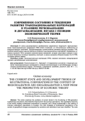 В статье рассматривается проблематика современных тенденций в функционировании транснациональных корпораций (ТНК) пятого поколения, их отличительные особенности от предшествующих поколений. Проанализирована количественная динамика ведущих мировых ТНК, выявлен резкий рывок в данном рейтинге китайских транснациональных корпораций. Определены основные стратегии ТНК в условиях геополитических изменений, которым сопутствуют санкции и ограничения. Выявлены основные параметры компаний, а именно динамика объемов продаж топ-10 ТНК, составлен рейтинг маяков.