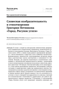 В статье с опорой на методологию лингвопоэтики раскрываются содержательно-семантические и формально-семантические особенности стихотворения Григория Николаевича Петникова «Город. Рисунок углем» (1924 г.). Анализ языка данного произведения проводится с учетом имеющихся в идиостиле поэта глубинных мыслительнофункциональных зависимостей, структурирующих авторскую модель мира («метатекстовых тропов (метатропов)» в понимании Н. А. Фатеевой). Показано, как средства лексического и тропеического означивания и синтаксической выразительности связаны с реализацией в тексте концептуальных метатропов гилозоизма и синестезии, присущих идиостилю Г. Петникова. Лексический выбор поэта анализируется с точки зрения разнообразия предикатов, обозначающих свойства, состояния и характеристики города как одушевленного деятеля. Рассматриваются языковые средства воплощения в стихотворении интермодального образа города, построенного на переплетении ощущений от разных органов чувств. Делается вывод о том, что, несмотря на отсутствие в тексте очевидной неопределенности словесных значений или окказиональных словоновшеств (характерных для раннего футуристического периода творчества Г. Петникова), в стихотворении «Город. Рисунок углем» поэт продолжает следовать ключевым для кубофутуризма принципам фактуры и расширенного смотрения, конструируя образ промышленного города как самосознающей, чувствительной и жизнедеятельной материи