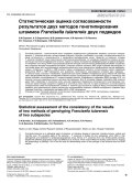 Francisella tularensis – этиологический агент туляремии, инфекционного заболевания человека, грызунов и зайцеообразных. F. tularensis включает четыре подвида (tularensis, holarctica, mediasiatica и novicida), которые различаются по своей патогенности и приуроченности к ландшафтно-географическим зонам. Несмотря на различия, штаммы F. tularensis проявляют очень ограниченное генетическое разнообразие, что затрудняло разработку полезных инструментов для изучения эпидемиологии патогена. Одним из первых инструментов дифференциации штаммов возбудителя туляремии стал метод VNTR. В дальнейшем развитие методов полногеномного секвенирования (WGS) способствовало созданию методов типирования бактерий с помощью анализа геномных SNP (single nucleotide polymorphism). В настоящее время для генотипирования микроорганизмов все чаще применяются иерархические методы дифференциации, основанные на MLVA и SNP-анализе. Целью исследования является статистический анализ корреляции результатов MLVA и SNP-типирования для выявления генетического разнообразия штаммов двух подвидов – F. tularensis subsp. holarctica и mediasiatica. Сравнительный анализ UPGMA (unweighted pair group method with arithmetic mean) дендрограмм методом танглеграмм позволил оценить согласованность кластеризации данных, полученных при разных способах генотипирования 31 штамма подвида holarctica. Коэффициент корреляции (BGI) составил 0,76, что означает сильную корреляцию разных методов кластеризации. Для 59 штаммов подвида mediasiatica BGI оказался равен 0,89 и приближен к показателю очень сильной корреляции. Корреляция согласованности кластеризации генотипов для обоих методов находится в пределах от сильной до очень сильной, что дает возможность их использования в иерархической схеме генотипирования штаммов F. tularensis двух изученных подвидов. Метод танглеграмм впервые применен для сравнительной оценки результатов генотипирования выборки штаммов возбудителя туляремии двух подвидов (holarctica и mediasiatica) методами MLVA и SNP-типирования.