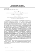 В статье рассматривается специфика визуальной реактуализации Реформации в германских землях первой половины XIX в. Различия в толкованиях исторической роли Мартина Лютера показаны на примере проектирования первого монумента реформатору по инициативе Патриотическо-литературного общества графства Мансфельд. Анализ вариантов, предложенных на конкурс мемориальных проектов, дает преставление об особенностях бюргерской идеи национального памятника в начале века. Изменения в социополитическом климате к 1820-м гг. находят свое отражение в утвержденной версии монумента, демонстрирующей консервативную точку зрения монархической власти. Развитие символики Реформации на протяжении 300 лет прослеживается на примере опубликованной коллекции монет, посвященной юбилейным праздникам 1617, 1717 и 1817 гг. Тенденция к персонализации исторического события изучается на основе графических циклов Вильгельма фон Лёвенштерна, Карла Августа Швердгебурта и Густава Кёнига. Таким образом, исследование широкого комплекса визуальных источников выявляет не только различные стратегии популяризации исторических образов, но и наглядно демонстрирует конфликт рецепций вокруг наследия Реформации, возникший при формировании нового национального символа.