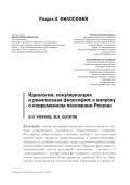 Статья посвящена проблеме идеологического выбора современного российского общественного сознания. Российское общественное сознание, пройдя в постсоветский период через процессы деидеологизации и реидеологизации, оказалось в сложной ситуации: перед дилеммой выбора между идеологиями либерализма и марксизма. Проведя философско-теоретический анализ категорий «идеология», «религия» и «консерватизм», авторы приходят к выводу о несоответствии отмеченных идеологий общественному сознанию России. Рефлексия особенностей онтологических обращений к православию и русской религиозной философии позволяет авторам предположить, что на таком мировоззренческом основании может сформироваться идеология любви и жизнесозидания. Именно она могла бы стать идеологической основой становления многополярного мира.
