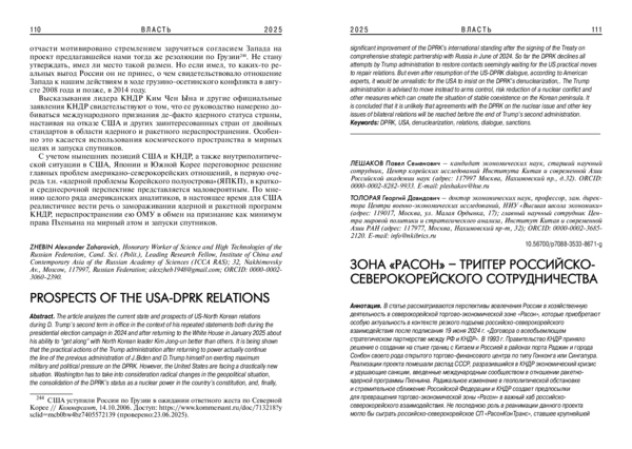 Статья: ЗОНА «РАСОН» - ТРИГГЕР РОССИЙСКО-СЕВЕРОКОРЕЙСКОГО СОТРУДНИЧЕСТВА