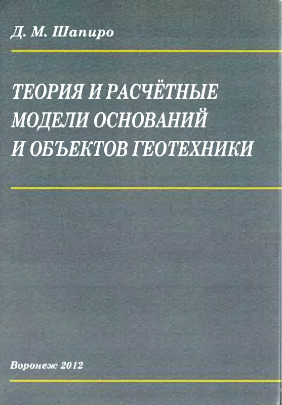 Шапиро Д. М. Теория и расчётные модели оснований и объектов геотехники : ммонография / Д. М. Шапиро. – Воронеж : ИПЦ «Научная книга», 2012. – 164 с. ISBN 9785905654701