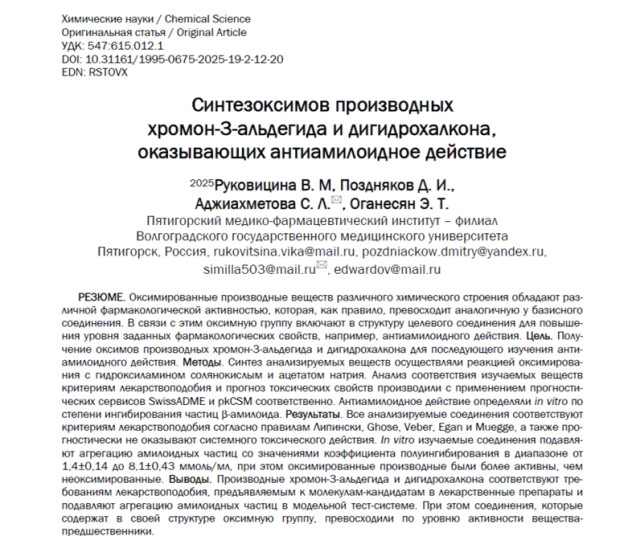 Статья: Синтезоксимов производных хромон-3-альдегида и дигидрохалкона, оказывающих антиамилоидное действие