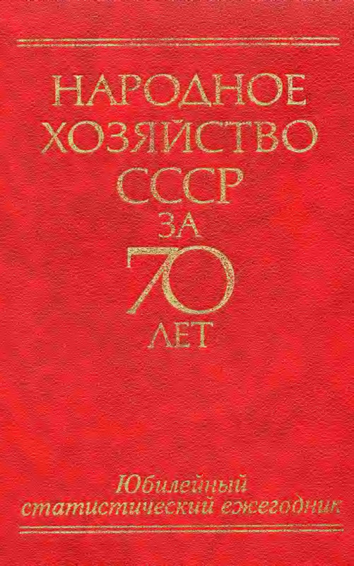 Юбилейный статистический ежегодник «Народное хозяйство СССР за 70 лет» содержит данные об экономическом и социальном развитии СССР за годы Советской власти.