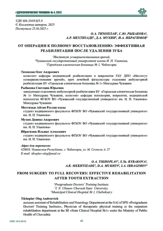 Статья: ОТ ОПЕРАЦИИ К ПОЛНОМУ ВОССТАНОВЛЕНИЮ: ЭФФЕКТИВНАЯ РЕАБИЛИТАЦИЯ ПОСЛЕ УДАЛЕНИЯ ЗУБА
