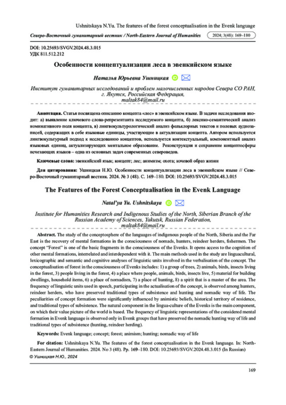 Статья: ОСОБЕННОСТИ КОНЦЕПТУАЛИЗАЦИИ ЛЕСА В ЭВЕНКИЙСКОМ ЯЗЫКЕ