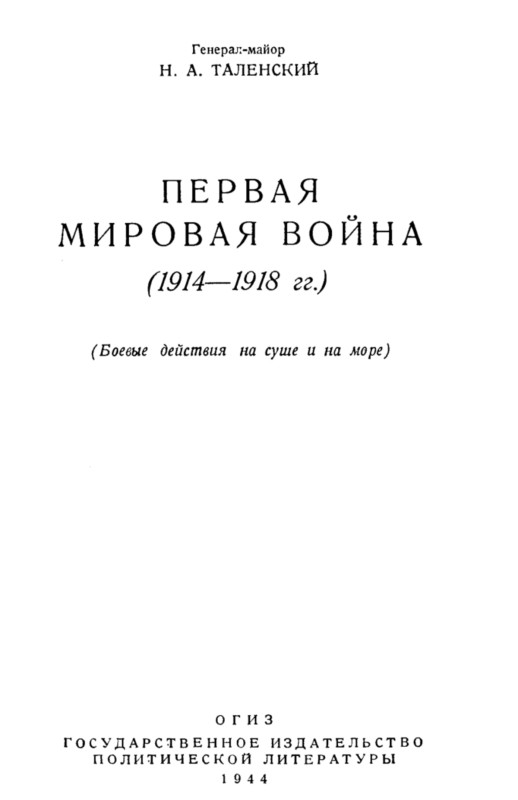 Книга: Генерал-майор Н. А. ТАЛЕНСКИЙ. Первая мировая война. (1914— 1918 гг.) (Боевые действия на суше и на море)