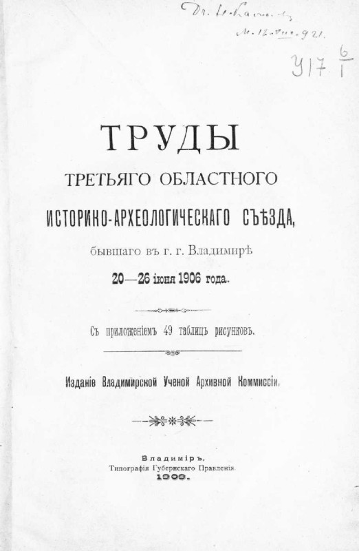 Монументальное издание, выпущенное Владимирской губернской ученой архивной комиссией в 1909–1911 годах и подводящее итоги работы крупнейшего регионального научного форума дореволюционной России.