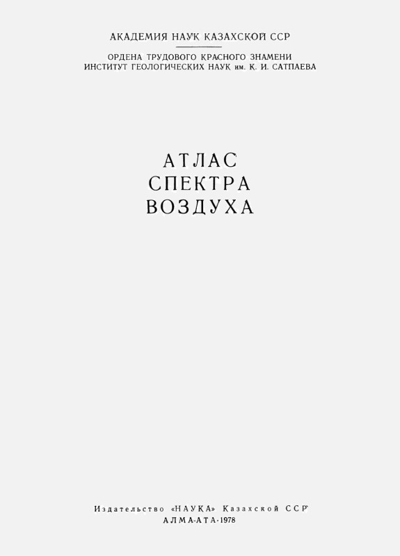 Атлас спектра воздуха. Алма-Ата, «Наука» КазССР, 1978. 87 с.