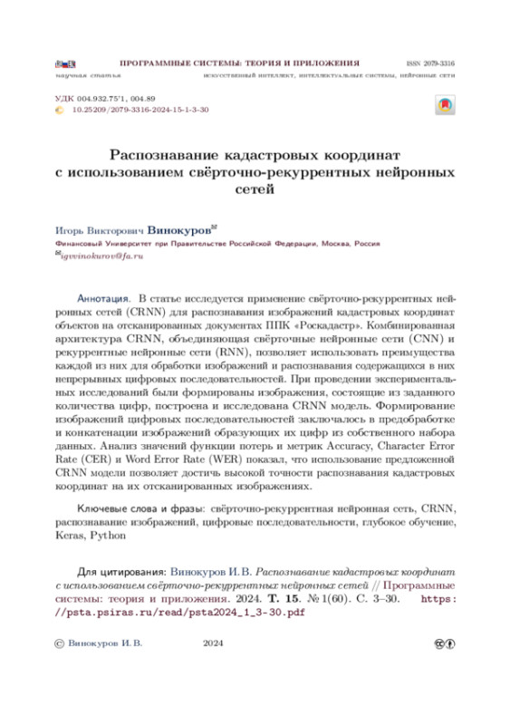 Статья: Распознавание кадастровых координат с использованием свёрточно-рекуррентных нейронных сетей