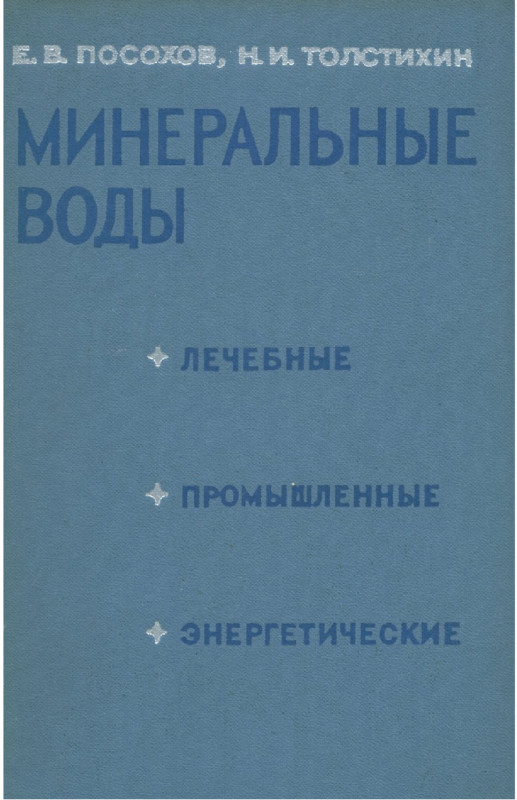 Посохов Е. В., Толстихин Н. И. Минеральные воды (лечебные, промышленные, энергетические). Л., «Недра», 1977. 240 с.