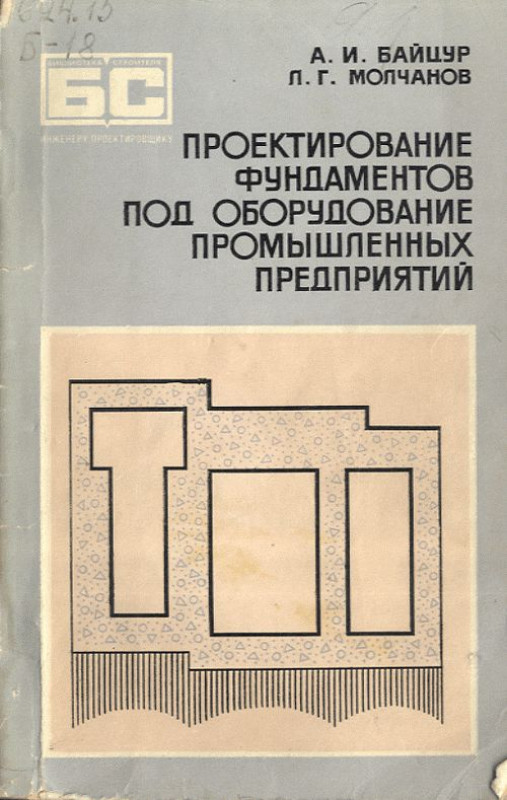 Проектирование фундаментов под оборудование промышленных предприятий. А. И. И. Байцур, Л. Г. Молчанов. Киев, «Будівельник», 1977, 172 с.