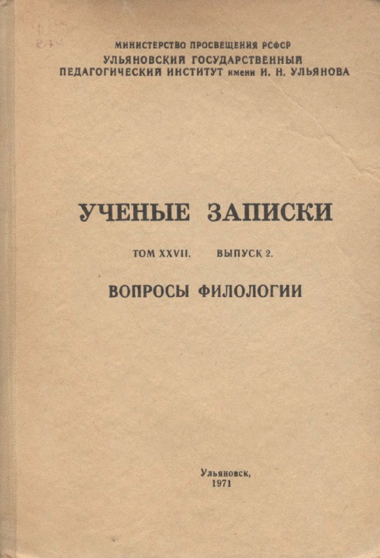 Книга: Ученые записки. Том 27. Выпуск 2. Вопросы филологии