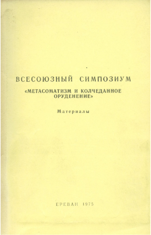 Настоящий симпозиум по проблеме «Метасоматизм и колчеданное оруденение» имеет своей основной целью подведение итогов изучения важного в промышленном отношении и интересного в отношении генезиса колчеданного типа оруденения.