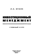 Автор книги — заслуженный деятель науки, доктор экономических наук, профессор Бланк И. А. — продолжительное время сочетает научную и преподавательскую работу в области инвестиционного менеджмента с практической деятельностью в качестве главного эксперта и консультанта ряда инвестиционных компаний.
