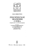 Книга: Лексическое значение слова (структура и комбинаторика)