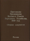 Сборник документов, отражающий текущую работу высшего органа хозяйственной политики Советской России в 1919 г. Является продолжением издания протоколов Президиума ВСНХ 1917-1918 гг. (М., Наука, 1991).
