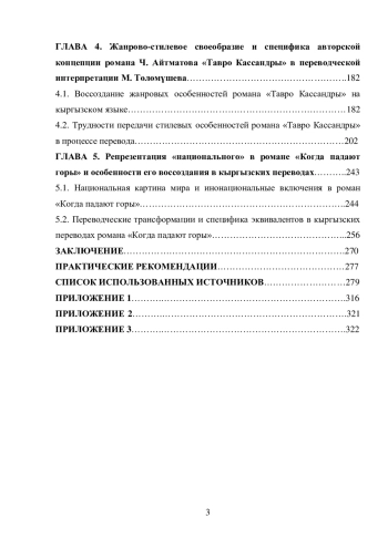 В диссертации освещаются предпосылки обращения кыргызскоязычных переводчиков к переводу романного наследия Ч. Айтматова, начиная с рассказов и повестей писателя, переводившихся в 1970–80-х гг., и завершая романами Ч. Айматова, переводившимися в 1980-е гг. («И дольше века длится день», «Плаха»), 1990-е гг. («Тавро Кассандры») и 2000-е гг. («Когда падают горы»).