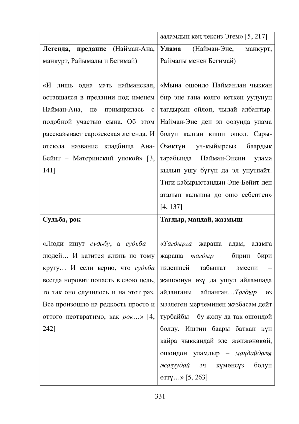 7. В романе Ч. Айтматова «Когда падают горы (Вечная невеста)» на первый план выдвигаются такие аспекты переводоведческого исследования, как национальная картина мира и инонациональные включения. Причем данные аспекты очевидным образом связаны с этико-эстетическими исканиями Ч. Айтматова и их отражением в произведении. Контрастивный анализ оригинала романа с кыргызскими переводами позволил прийти к следующим выводам.