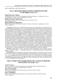 Публикуется клад, найденный археологической экспедицией музея-заповедника «Неаполь Скифский» при раскопках в 2016 г. на городище Кара-Тау. Городище входит в комплекс археологических памятников на территории заказника «Урочище Кубалач» близ с. Сенное Белогорского района Республики Крым. Клад происходит из грунтово-каменного завала в юго-восточном углу подвала, расположенного близ цитадели городища. Функционирование подвала прекратилось во второй половине IV в. Клад состоит из трех серебряных предметов - браслета, позолоченной серьги и фрагмента позолоченной фибулы. Для аналогий фибуле от Галии до Крыма предложена новая типология и рассмотрены основания датировок. Прототипами для нее и ей подобных были фибулы середины V в. из Среднего Подунавья. Экземпляр из Кара-Тау связан с контекстом переработки дунайских образцов, которые стали основой производства пальчатых фибул на Боспоре, начавшегося около последней трети / четверти V - начала / первой четверти VI в. Браслет с расширенными концами, украшенными поперечными врезными линиями, и «серьга» с 14-гранником на дужке не противоречат такой датировке. Вещи из клада соответствуют женскому убору варваров Крыма второй половины V - первой половины VI в., хотя аналогии им распространены намного шире географически и хронологически. Данный комплект, по-видимому, составляет половину изделий из драгоценных металлов одного из таких уборов. Высказано предположение, что это доля одного из двух подельников, разграбивших погребение с таким убором. Поселений и могильников V-VII вв. в восточной части Крымских предгорий пока не известно. Данный клад и ряд единичных находок позволяют предполагать, что такие памятники будут найдены в будущем.