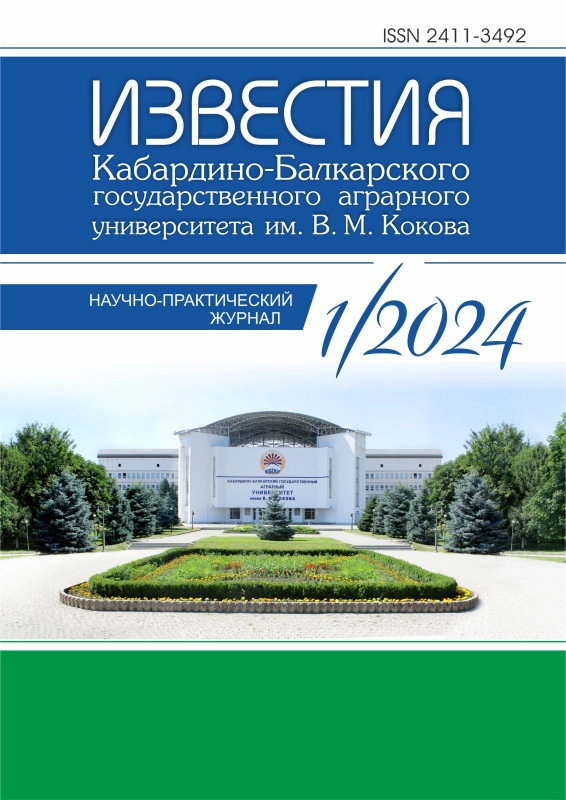 В статье рассматривается суточная периодичность и ритмичность линейного роста кукурузы в условиях предгорной зоны Кабардино-Балкарии. Цель исследования - установление суточного прироста кукурузы в динамике в зависимости от сроков посева. Полевые эксперименты проводились в 2021-2023 гг. в учебно-производственном комплексе Кабардино-Балкарского государственного аграрного университета имени В. М. Кокова. Опыты закладывались на черноземе выщелоченном. Опытный участок характеризовался следующими агрохимическими показателями: содержимое гумуса в пахотном горизонте - 3,3%, общий азот - 0,28%, емкость поглощения - 34,4 мг∙эквивалент на 100 г почвы, реакция почвенного раствора нейтральная (рН - 7). Содержание подвижного фосфора составляло 15,0 мг на 100 г почвы, то есть средняя обеспеченность (по Чирикову), обеспеченность обменным калием повышенная - 15-18 мг на 100 г почвы (по Чирикову). По механическому составу эта почва тяжелосуглинистая. Содержание в ней физической глины составляло 57%. В ходе исследования установлено, что неравномерность и близкий к синусоидальному суточный ход роста свойственны кукурузе так же, как и другим культурам семейства злаковых. Доминирование термической детерминальности в ростовых колебаниях у кукурузы выражено еще более отчетливо в связи с ее повышенной требовательностью к теплу. У этой культуры в течение суток проявляется совпадение во времени не только фазы минимума на кривых роста и температуры, но и максимума. Наибольшие часовые приросты (4,5 мм/ч) приходились на 15 ч, когда средняя температура достигала 22,1°С, а наименьшие (1,5 мм/ч) отмечены в 4-6 ч при температуре 7,5°С. Полупериод нисходящей части кривой роста составил при таком ходе температуры 14 ч, а восходящей части - 10 ч.