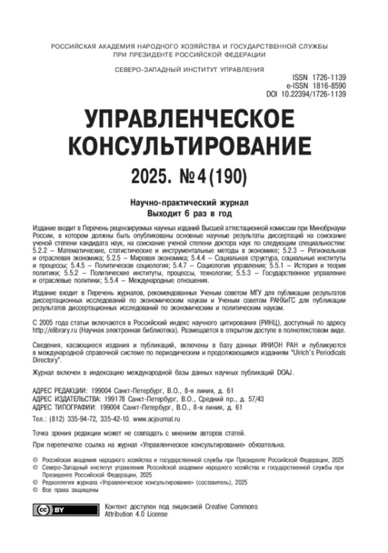 Для цитирования: Хлутков А. Д. Особые условия СВО и реконструкция системы государственного управления. Управленческое консультирование. 2025;(4):8. EDN: KDHYXY