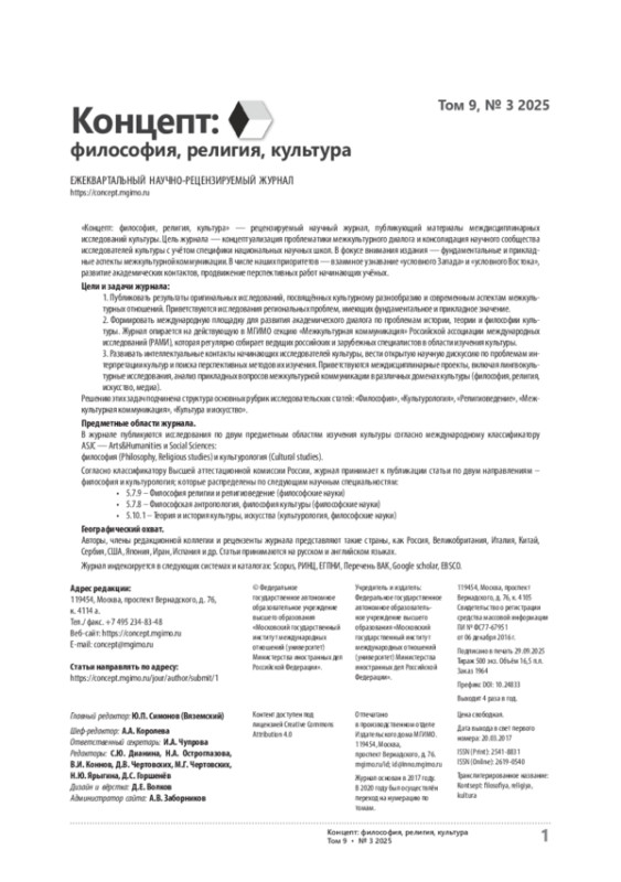 Актуальность исследования обусловлена необходимостью исторической рефлексии успешных моделей межцивилизационного диалога, в частности, стратегии аккомодации, которая демонстрирует эффективность культурного взаимодействия. В центре внимания — музыкальная составляющая миссии Маттео Риччи в Китае, остающаяся периферийной в изучении особенностей стиля музыкального мышления представителей культуры этой страны. Цель данного исследования — выявить философско-культурные основания музыкальной составляющей миссии Риччи и описать их в контексте приёмов культурной аккомодации, которые использовал этот миссионер. Для этого было необходимо решить задачи: 1) систематизировать имеющиеся данные о первом «музыкальном знакомстве» Китая с Европой и уточнить подходы к проблеме первого появления европейской музыки в Китае; 2) выявить предпосылки использования Риччи музыкальной деятельности в качестве миссионерского приёма; 3) уточнить фактологическую информацию, касающуюся датировок, названий музыкальных инструментов, сочинений и других аспектов миссии Риччи в контексте исследуемой темы; 4) описать коммуникативно значимые результаты музыкального «взаимодействия» Риччи с императором Ваньли, китайскими учёными и чиновниками; 5) установить, каким образом иезуиты использовали элементы европейской музыкальной теории в обучении китайскому языку. Материалами исследования послужили источники, комментаторская и исследовательская литература на китайском и европейских языках, касающиеся темы «первой встречи» европейской музыки и китайской культуры. Методология основана на синтезе герменевтического анализа сопоставляемых текстов (труды Риччи, письма, латинские и китайские источники) и принципов историко-культурной антропологии, что позволяет реконструировать символические значения и коммуникативные интенции, вкладывавшиеся в музыкальные практики. В работе применён комплексный междисциплинарный подход, объединяющий призмы философии культуры, истории, музыковедения, семиотики и лингвистики. Для проведения герменевтического анализа имеющихся тексов использованы биографический и историко-генетический методы, а также приёмы сопоставления соответствующих европейских и китайских названий инструментов. В результате установлено, что музыка выступала ключевым компонентом миссионерской стратегии Риччи в силу её мировоззренческой роли в китайской культуре, сравнительной доступности и допустимости использования «музыкальной» формы проповеди среди китайской элиты, богатыми возможностями аккомодации музыкального материала к её мировоззренческим и нравственным установкам. Выводы: 1) миссия Риччи сумела преодолеть первоначальное непонимание и отрицание с помощью удачной стратегии первоначальной аккомодации, избранной Риччи, где музыка играла неслучайную роль; 2) использование музыки в качестве специфического «кода» евангелизации было определено принадлежностью Риччи к Ордену иезуитов и его образованием, включавшем музыку как один из существенных компонентов; 3) в ходе сопоставления широкого спектра имеющихся данных с большой степенью вероятности первым «западным» инструментом, привезённым в Китай Маттео Риччи, был клавесин, а не клавикорд; при этом разночтения в имеющихся данных о появлении первого европейс