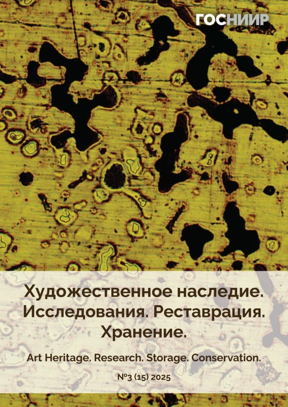Статья посвящена изучению причин разрушения литых латунных осветительных приборов конца XIX – начала XX века в процессе их реставрации. Целью исследования являлось определение того, как дефекты литья, а также состав и микроструктура влияют на склонность к потере прочности этих изделий. Для решения проблемы из фондов ГОСНИИР была выбрана коллекция фрагментов литой латунной арматуры осветительных приборов рассматриваемого времени. Их состав определяли с помощью рентгенофлуоресцентного анализа на приборе HitachiX-Met-8000, особенности микроструктуры — на металлографическом микроскопе МИМ-8. Элементный состав включений фиксировали с помощью сканирующего электронного микроскопа HitachiTM4000Plus с приставкой для микрорентгеноспектрального анализа Quaniax 75 (Bruker). Было установлено, что фрагменты отлиты из латуни, содержащей от 19,6 до 34% цинка и от 1,44 до 3,27% свинца, а также десятые доли процента примесей серы, хлора, кремния, алюминия, кальция. Микроструктура фрагментов отличалась крупными литыми кристаллитами с ярко выраженной дендритной ликвацией, примеси образовали хрупкие интерметаллические соединения с цинком и свинцом, они выделялись по границам литых кристаллитов и в междендритных пространствах, там же концентрировались поры. Перечисленные дефекты снижали прочность и пластичность фрагментов. В итоге изделия могли разрушаться при реставрации в случае механического воздействия.