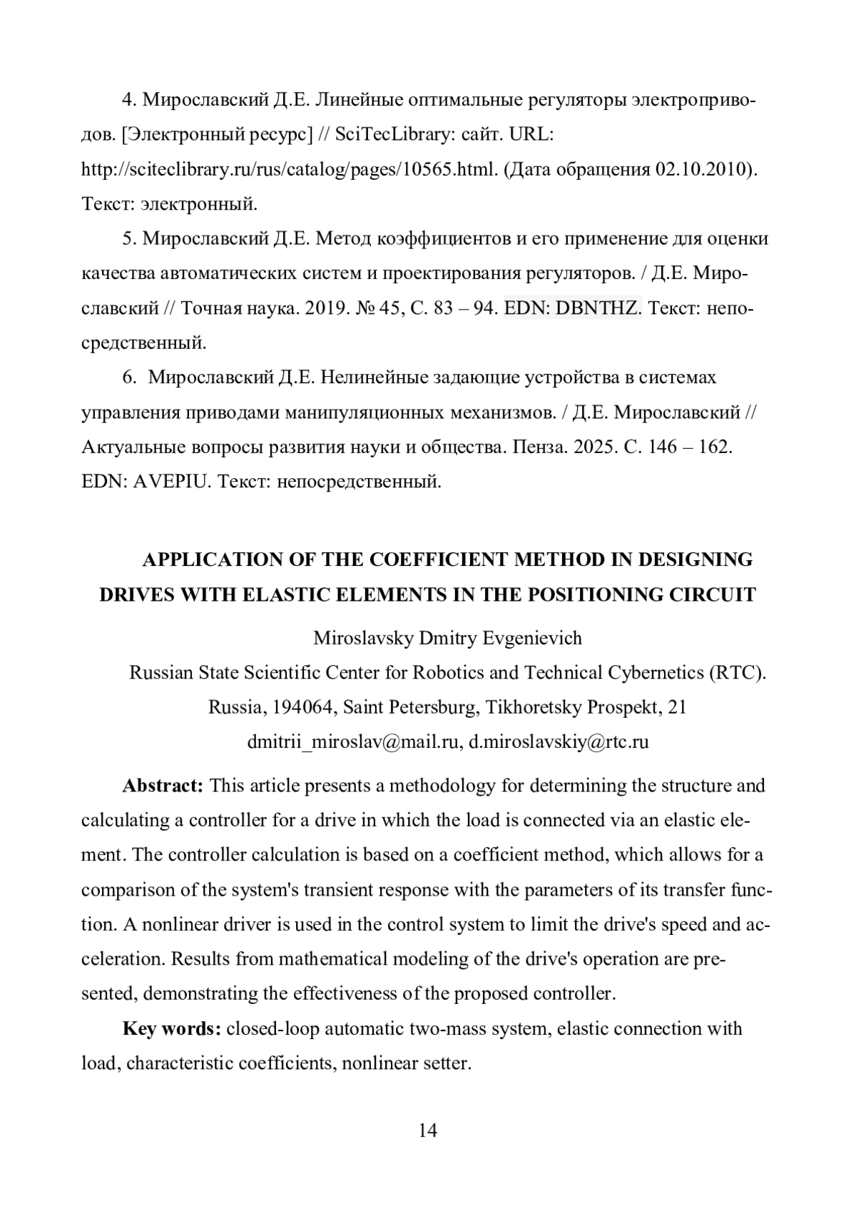 Препринт: ПРИМЕНЕНИЕ МЕТОДА КОЭФФИЦИЕНТОВ ПРИ ПРОЕКТИРОВАНИИ ПРИВОДОВ С УПРУГИМИ ЭЛЕМЕНТАМИ В КОНТУРЕ ПОЗИЦИОНИРОВАНИЯ (2026)
