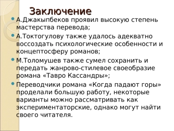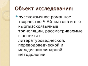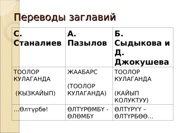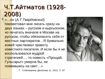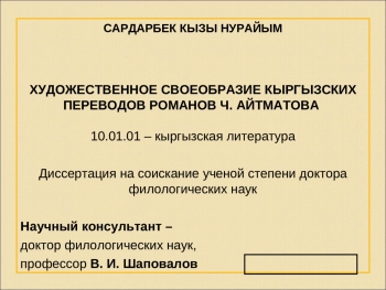 Презентация: ХУДОЖЕСТВЕННОЕ СВОЕОБРАЗИЕ КЫРГЫЗСКИХ ПЕРЕВОДОВ РОМАНОВ Ч. АЙТМАТОВА