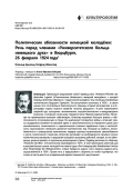 Статья посвящена рассмотрению взглядов одного из наиболее спорных философов и политических мыслителей ХХ в. Освальда Шпенглера на примере его речи «Политические обязанности немецкой молодёжи», с которой он выступил перед студенческой аудиторией в 1924 г. В этом небольшом по объёму, но тематически насыщенном тексте знаменитый автор двухтомника «Закат Западного мира» затронул разнообразные аспекты, характеризующие метаморфозы европейской культуры после Первой мировой войны, оценил перспективы экономических, политических, военных и социальных перемен, выразил своё понимание положения Германии в послевоенной ситуации. Вынужденно оставляя за скобками ряд вопросов, поднятых в речи, статья фокусирует внимание на понимании Шпенглером роли молодёжи в политике. Актуальность данной проблематики обусловлена тем, что в наши дни культура переживает новый этап трансформации, не менее глобальной и более кардинальной по возможным последствиям по сравнению со сдвигами вековой давности. Поэтому и сегодня значима «битва за молодёжь», сыгравшая судьбоносную роль в истории Веймарской республике. Цель работы заключается в представлении в системном виде взглядов Шпенглера на место и роль молодёжи в политике, высказанных в анализируемой речи. Для достижения данной цели были решены следующие задачи: показан идейно-политический контекст выступления Шпенглера, в том числе обозначены основные ценностные приоритеты концепций «прусского социализма» и «немецкой идеи»; описано состояние молодёжного движения в Германии в изучаемый период; представлены подходы к осмыслению научно обоснованной политики в мировой политической мысли, дана характеристика шпенглеровского требования «учиться политике» как политической обязанности. Исследование опиралось на такие методы, как историко-философский анализ текста, дискурсивный анализ и компаративный анализ. Результатом стало обоснование вывода, что позиция О. Шпенглера, высказанная в проанализированной речи, полностью соответствовала общемировой тенденции сциентизации политического управления и целенаправленного формирования кадрового резерва политической элиты, но при этом опиралась на концептуальные основания «прусского социализма», отрицающего ценность парламентаризма и демократического правления в целом, ориентируясь на идеал политического единства на основе «духа народа». В соответствии с этим Шпенглер утверждал необходимость рассматривать овладение знаниями о политике и формирование навыков управления в качестве обязанности, а не добровольного выбора молодого человека.