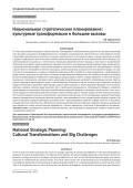 В статье рассмотрены вопросы стратегического планирования национального развития в социально-философском дискурсе культурных трансформаций. Суть специфики национального стратегического планирования состоит в смысловом разграничении стратегии и тактики, стратегических и тактических задач, а также в различении целей и средств, необходимых для осмысления любого рационального действия. В статье поднимаются такие вопросы, как прогнозирование социальных и политических процессов, футурологические подходы к прогнозам и выстраивание прогнозов на основании цивилизационного подхода. В частности, для сравнения автор приводит труды американских и отечественных философов и политологов, дававших прогнозы национального развития и закладывавших в основу стратегического планирования именно культурные, цивилизационные основания. В статье делается вывод, что стратегическое планирование на уровне государства невозможно без способности прогнозирования и моделирования развития всего мира, всех его регионов и основных межрегиональных объединений. Это особенно актуально в условиях активного формирования глобального миропорядка, который вряд ли можно назвать порядком, но при этом текущая социальная, политическая, экономическая и демографическая динамика не является управляемым хаосом. Идет активный переход от однополярного мира к многополярному. Отмечается, что как никогда остро ощущается нехватка теоретической базы, адекватно объясняющей задачи происходящего и прогнозирующей будущее, хотя активные действия мировых игроков свидетельствуют об их стремлении вмешиваться в сложившиеся порядки и управлять происходящими изменениями. Еще один важный вывод, сделанный автором в настоящей статье, состоит в том, что на смену парадигме устойчивого развития приходит новая, ключевую роль в которой играет понятие «большие вызовы». Это понятие рождается в рамках исторической и культурологической наук, но его последующая эволюция показывает мощный конвергентный потенциал данного концепта и выстраиваемого на его основе концептуального каркаса. Парадигма больших вызовов необходима для объяснения и прогнозирования событий в сфере политики и экономики, государственного строительства и обеспечения национальной безопасности. Данная парадигма больших вызовов все еще находится в стадии концептуальной проработки, а также в выявлении и описании ее философских оснований.