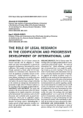 ВВЕДЕНИЕ. Предусмотренная Уставом Организации Объединенных Наций (далее ‒ ООН) обязанность Генеральной Ассамблеи организовывать исследования и делать рекомендации в целях «поощрения прогрессивного развития международного права и его кодификации» выполняется в настоящее время прежде всего посредством сотрудничества государств в формате Комиссии международного права ООН. Вне работы этой Комиссии роль исследований международного права (индивидуальных и коллективных) по-разному оценивается, начиная с вопроса о том, корректно ли вообще употреблять термин «неофициальная кодификация международного права». В настоящей статье исследуется, каково практическое влияние научных трудов на совершенствование современного международного права, особенно в контексте положений Устава ООН о «доктринах наиболее квалифицированных специалистов по публичному праву». МАТЕРИАЛЫ И МЕТОДЫ. Исходными материалами при подготовке настоящей статьи выбраны комментарии к Уставу ООН, в том числе к такой его неотъемлемой части, как Статут Международного суда ООН, документы Комиссии международного права ООН, научные публикации по общему международному праву, включая исследования о его кодификации и развитии, его истории, как подготовленными отечественными, так и зарубежными правоведами-международниками. Использованы такие общенаучные методы познания, как анализ и синтез, а также специальные юридические методы, включая сравнительно-правовой. РЕЗУЛЬТАТЫ ИССЛЕДОВАНИЯ. Предусмотренное Уставом ООН понятие «доктрины наиболее квалифицированных специалистов по публичному праву» обозначает особый компонент более широкого понятия – «науки международного права». Только лишь проведения исследования конкретного вопроса международного права недостаточно для того, чтобы его результаты можно было отнести к «доктринам» в смысле ст. 38 Статута Международного суда ООН; предложены некоторые базовые характеристики таких «доктрин»: научный (академический) характер публикации результатов такого международно-правового исследования; учет при исследовании системности международного права (т. е. результаты исследования не должны сводиться к фрагментарной презентации конкретного вопроса международного права, вырванной из общего контекста его системы); профессиональные достижения автора публикации по международному праву, их признание в международном научном сообществе. Понятие «доктрины наиболее квалифицированных специалистов по публичному праву», используемое в Уставе ООН и в его комментариях, обозначает, прежде всего, теоретические разработки вопросов международного права, которые выполнены правоведами, индивидуально или в коллективе; это понятие не означает документ, изданный каким-либо государством. ОБСУЖДЕНИЕ И ВЫВОДЫ. В международноправовой литературе отражены различные мнения о роли юридических исследований в развитии международного права и его систематизации, в том числе различные мнения о соотношении терминов «наука международного права» и «доктрины наиболее квалифицированных специалистов по публичному праву» (последний термин предусмотрен ст. 38 Статута Международного суда ООН). В зарубежной международно-правовой литературе предложено, в частности, позитивное описание списка юристов-международников, чьи труды цитирова