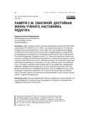 Очерк посвящен памяти Светланы Михайловны Смагиной (1936–2024), работавшей в РГУ (ЮФУ) 55 лет. В 1969 г. она связала свою жизнь с Ростовским государственным университетом. Спустя годы она стала профессором кафедры исторической политологии Института истории и международных отношений Южного федерального университета, Заслуженным работником науки и образования Российской Федерации. Выделяется роль С. М. Смагиной в изучении истории классического периода российской многопартийности, российской эмиграции и политической истории России начала ХХ в. Признается вклад С. М. Смагиной в подготовку работников высшей школы. Отмечается, что С. М. Смагина прошла значительный путь от обучения в целевой очной аспирантуре РГУ до профессора, заведующего кафедрой. Кафедра под руководством С. М. Смагиной была включена в Золотой фонд российской науки, награждена дипломом «Золотая кафедра России». Автор раскрывает особенности жизненного пути своего наставника Светланы Михайловны Смагиной, делится собственными воспоминаниями о ней и ее роли в жизни коллег и студентов университета