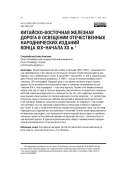 КИТАЙСКО-ВОСТОЧНАЯ ЖЕЛЕЗНАЯ ДОРОГА В ОСВЕЩЕНИИ ОТЕЧЕСТВЕННЫХ НАРОДНИЧЕСКИХ ИЗДАНИЙ КОНЦА XIX-НАЧАЛА XX В (2023)
