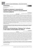 К ВОПРОСУ О ВВЕДЕНИИ "МИНИМАЛЬНОГО НАЛОГА" В РОССИИ В УСЛОВИЯХ МЕЖДУНАРОДНОЙ НАЛОГОВОЙ РЕФОРМЫ (2025)