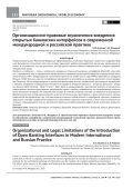 На финансовом рынке Российской Федерации сформировалась устойчивая тенденция к развитию в цифровом формате бесшовного клиентского пути, при котором одинаково удобно взаимодействие различных организаций на сайтах, в приложениях или при рассылках для беспрепятственного обмена информацией и создания здоровой конкурентной среды. Предмет исследования — этапы и особенности внедрения Открытых банковских интерфейсов (OpenAPI). Цель работы —определение мер по преодолению организационно-правовых ограничений внедрения инновационной технологии Открытых API в международной и российской практике на основе опыта стран БРИКС, европейских государств, Японии и США. Научная новизна исследования заключается в установлении основных различий в этапах внедрения Открытых API на международном и российском финансовом рынках; особенностей регуляторных воздействий в процессе внедрения инновационной технологии в парадигме Открытого банкинга — Открытых финансов — Открытых данных (Open Banking — Open Finance — Open Data) в международной и российской практике по результатам сравнительного анализа существующих регуляторных рамок и практик, направленных на стимулирование использования технологий Открытых API в банковском секторе. В качестве основных методов исследования использовались формальная логика, методы сравнительного анализа, систематизации, группировки, а также контент-анализ, приемы графической интерпретации и др. Систематизация успешных кейсов, взятых из зарубежной практики, позволила предложить способы преодоления выявленных в российской практике ограничений. Сделан вывод о важности интеграции международного опыта в российскую практику для формирования эффективной экосистемы открытого банкинга