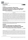 Объект исследования — общественные отношения в сфере охраны объектов всемирного природного наследия Российской Федерации. Цель работы — развитие теоретических представлений о совершенствовании правовых механизмов региональной политики, направленных на обеспечение сохранности национальных природных объектов, которые признаны всемирным достоянием. С помощью метода анализа теоретических подходов к определению понятий «природный объект», «памятник природы», «объект природного наследия» с правовой точки зрения установлено, что в настоящее время возникла насущная необходимость в уточнении содержательного контента термина «объект всемирного природного наследия» с учетом национальных интересов России. В результате сравнительноправового анализа российского регионального законодательства по четырем объектам, названным Комитетом по охране всемирного культурного и природного наследия ЮНЕСКО «величайшими явлениями природы или местами исключительной природной красоты и эстетической ценности», выявлены пробелы и коллизии в правовых механизмах, что позволило сделать вывод о необходимости внесения изменений в правовое регулирование статуса таких объектов в России для их сохранения и использования в качестве драйвера экономической интеграции в субъектах Российской Федерации