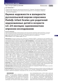 Обоснование. Для оценки качества жизни, связанного со здоровьем (КЖСЗ), у недоношенных детей разработан родительский опросник PedsQL Infant Scales. Опросник переведен на русский язык, однако свойства (надежность и валидность) адаптированной версии оставались неизученными. Цель исследования — изучить надежность и валидность русскоязычной родительской версии опросника PedsQL Infant Scales при оценке КЖСЗ у недоношенных детей в возрасте 13–24 мес. Методы. В исследование включали родителей детей в возрасте 13–24 мес, рожденных недоношенными и проходивших лечение в периоде новорожденности в отделении реанимации и интенсивной терапии (ОРИТ). Для оценки физической активности, физических симптомов, эмоционального состояния, социальной, познавательной активности и получения общей оценки КЖСЗ недоношенных детей применяли русскоязычную родительскую версию опросника PedsQL Infant Scales. Внутреннюю согласованность опросника (надежность) оценивали с применением -коэффициента Кронбаха, коэффициентов Спирмена – Брауна и половинного расщепления Гуттмана. Для проверки конструктивной валидности и соответствия опросника теоретической пятифакторной структуре проводили конфирматорный факторный анализ. Оценивали факторные нагрузки и индексы соответствия модели: CFI (Comparative Fit Index), TLI (Tucker – Lewis Index), SRMR (Standardized Root Mean Squared Residual) и относительный хи-квадрат ( 2/df). Результаты. Проанализированы результаты опроса родителей (матери) 91 недоношенного ребенка (гестационный возраст 32,0 (29,5; 34,0) нед) в возрасте 16 (15; 19) мес. Длительность госпитализации в ОРИТ составила 7 (4; 10) койко-дней, длительность инвазивной искусственной вентиляции легких (иИВЛ) — 168 (120; 234) ч. Коэффициент внутренней согласованности -коэффициента Кронбаха по всему опроснику составил 0,832, Спирмена – Брауна — 0,803, половинного расщепления Гуттмана — 0,797. Относительный хи-квадрат равен 2,1, CFI — 0,81, TLI — 0,799, SRMR — 0,049. Общая оценка КЖСЗ составила 77,6 (67,8; 84,3) балла, наибольшие значения отмечены по шкале «Физические симптомы» — 87,5 (80,0; 92,5) балла, наименьшие — «Эмоциональное состояние», 70,8 (60,4; 78,1) балла, и «Познавательная активность», 66,7 (55,6; 83,3) балла. Общая оценка по шкале PedsQL Infant Scales не связана с гестационным возрастом (р = 0,224), длительностью госпитализации в ОРИТ (р = 0,071) и продолжительностью иИВЛ (р = 0,670), но была ниже у детей, перенесших внутрижелудочковое кровоизлияние в сочетании с иИВЛ. Заключение. Установлены удовлетворительная надежность и конструктивная валидность русскоязычной родительской версии опросника PedsOL Infant Scales. С учетом ограничений исследования (ошибка отбора, дистанционный опрос, небольшой размер выборки) рекомендуется дальнейшая языковая и культурная валидация опросника.