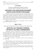 МЕТАТЕКСТ КАК СМЫСЛООБРАЗУЮЩИЙ ФАКТОР КУЛЬТУРНОЙ ТРАНСЛЯЦИИ (2025)