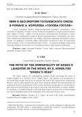 Статья посвящена анализу мифологизирующей рецепции гоголевского смеха в романе А. Королёва «Голова Гоголя». В ней рассматриваются способы реактуализации двух мифов о Гоголе - мифа о Гоголе-колдуне, предложенного Розановым, и городской легенды о похищенной голове во время перезахоронения. Установлено, что механизм совместной реактуализации этих мифов определяет принципы построения сюжета романа, что приводит к созданию мифа о бессмертии гоголевского смеха. В заключение делается вывод о том, что королёвский миф о Гоголе - это ироничная форма осмысления неосуществлённой мечты писателя о бессмертии души в христианском понимании.