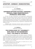 В статье дан анализ архетипических кодов федосеевской игрушки-каталки «Пароход». Для исследования комплекса пароход/ корабль/ ладья/ судно привлечены материалы археологии и истории искусства, начиная с эпохи неолита, исторической и народной этимологии русского языка, образности параллельных промыслов отечественной народной культуры. Сделан вывод о том, что в сложившемся образе корабля-колесницы федосеевского промысла конца XIX - середины ХХ веков возобладали черты дневного солнечного начала, воплотилась модель гармоничного, упорядоченного мироздания рая на земле.
