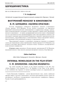В статье описываются особенности внутреннего монолога в киноповести «Калина красная» В. М. Шукшина. В ходе анализа установлено, что фрагменты внутренней монологической речи композиционно и содержательно связаны с кризисными коммуникативными ситуациями, которые проживает главный герой. Внутренний монолог в киноповести - это прием, раскрывающий психологию героя и объясняющий суть его поступков. В статье проанализированы такие типы внутреннего монолога, как актуальный, косвенный, ретроспективный. Выявлены их функции: характерологическая, идеологическая, сюжетообразующая и композиционная. Описан внутренний монолог, представляющий собой аппликацию авторского и персонажного слоев. Представленный материал в дальнейшем планируется включить в словарную статью для энциклопедии одного произведения «Калина красная» В. М. Шукшина, над которой в настоящее время работает коллектив ученых Алтайского государственного педагогического университета.