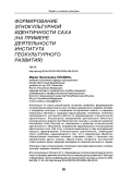 В статье рассмотрены основные проблемы формирования этнокультурной идентичности саха, которые выражаются в создании условий, в поддержке культуры, в сохранении исторической памяти, в передаче уникальных обычаев и традиций подрастающему поколению. Отмечена необходимость системной работы по формированию этнокультурной идентичности. Рассмотрены направления деятельности Института геокультурного развития при Министерстве культуры и духовного развития Республики Саха (Якутия) по сохранению и развитию этнокультурной идентичности и обозначены направления формирования этнокультурной идентичности саха. При этом, учитывая выявленные в ходе исследований вопросы формирования этнокультурной идентичности, необходимо учесть проблемы, выражающиеся в том, что в современном обществе, подрастающее поколение начинает утрачивать связь с прошлым под воздействием других культур, образа жизни, интернета, постепенной утраты родного языка, переезда молодежи из сельской местности в города.
