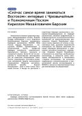 «Сейчас самое время заниматься Востоком»: интервью с Чрезвычайным и Полномочным Послом Кириллом Михайловичем Барским (2024)